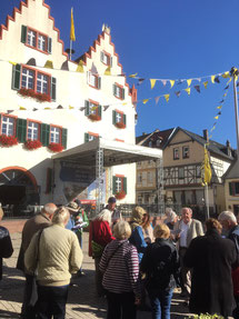 Auf dem Marktplatz der alten Reichsstadt Oppen-heim am Rhein gibt Dr. Klaus Kremb den Teilneh-