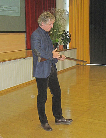 Der Referent bei der Präsentation eines Gewehres aus der Schinderhannes-Zeit im Anschluss an sein Referat