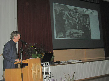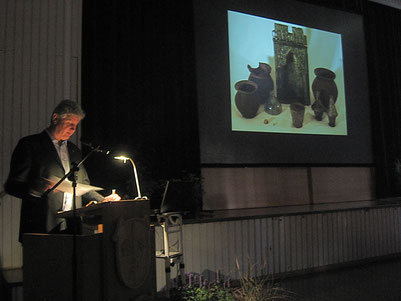 Danach sprach der Dipl.-Geologe Jochen Babist zu dem Thema „Vom Lorscher Codex zu den „Abgelöststeinen“ – Der Eisenerzbergbau im mittleren Odenwald im Spiegel territorialer Machtausübung“. Auf der Basis montanarchäologischer Untersuchungen wurden den Tagungsteilnehmern interessante Einblicke in die Organisation von Abbau und Verhüttung, sowie in die strategische Bedeutung gegeben, die das Eisenerz-Vorkommen vor und während des Dreißigjährigen Krieges erreicht haben muss.
