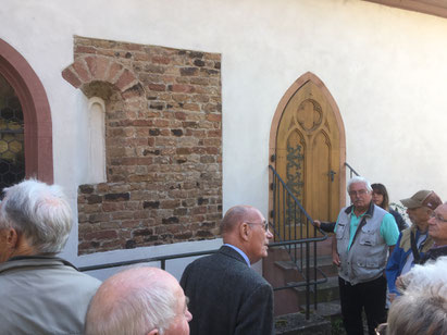 Die Kurzexkursion am Samstagnachmittag führte nach Vielbrunn, das dieses Jahr sein 1000 jähriges Bestehen feiert, und wo unter Leitung von Norbert Allmann der rekonstruierte römische Wachtturm am Limes und danach die evangelische Kirche und der Haingerichts-platz besichtigt wurde.